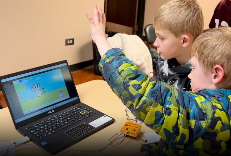 This camp explores how to use AI technology like face-tracking and hand-tracking, alongside block-based coding, mainboards, IR sensors, LEDs, gears, servo motors, DC motors and axles, as well as concepts like gear ratios, measuring values and setting thresholds, potential and kinetic energy, and more!